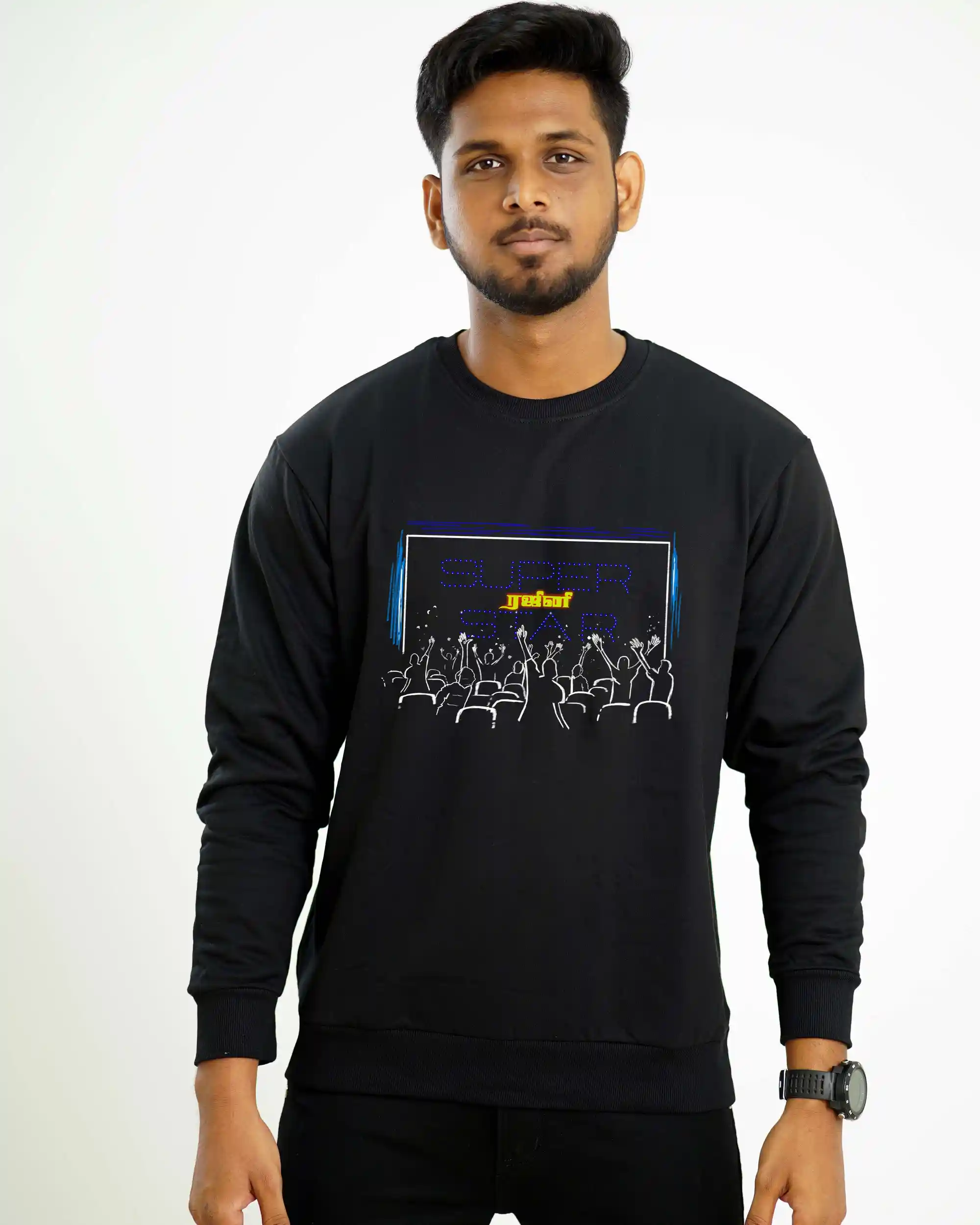 Embrace the essence of fandom with our exclusive Thalaivar-inspired Sweatshirt! Wear your admiration proudly as you flaunt the style and charisma of the one and only Super Star Rajinikanth. Join the league of devoted fans and make a statement with every step. Let the world know: Thalaivar is not just a star, but a phenomenon!