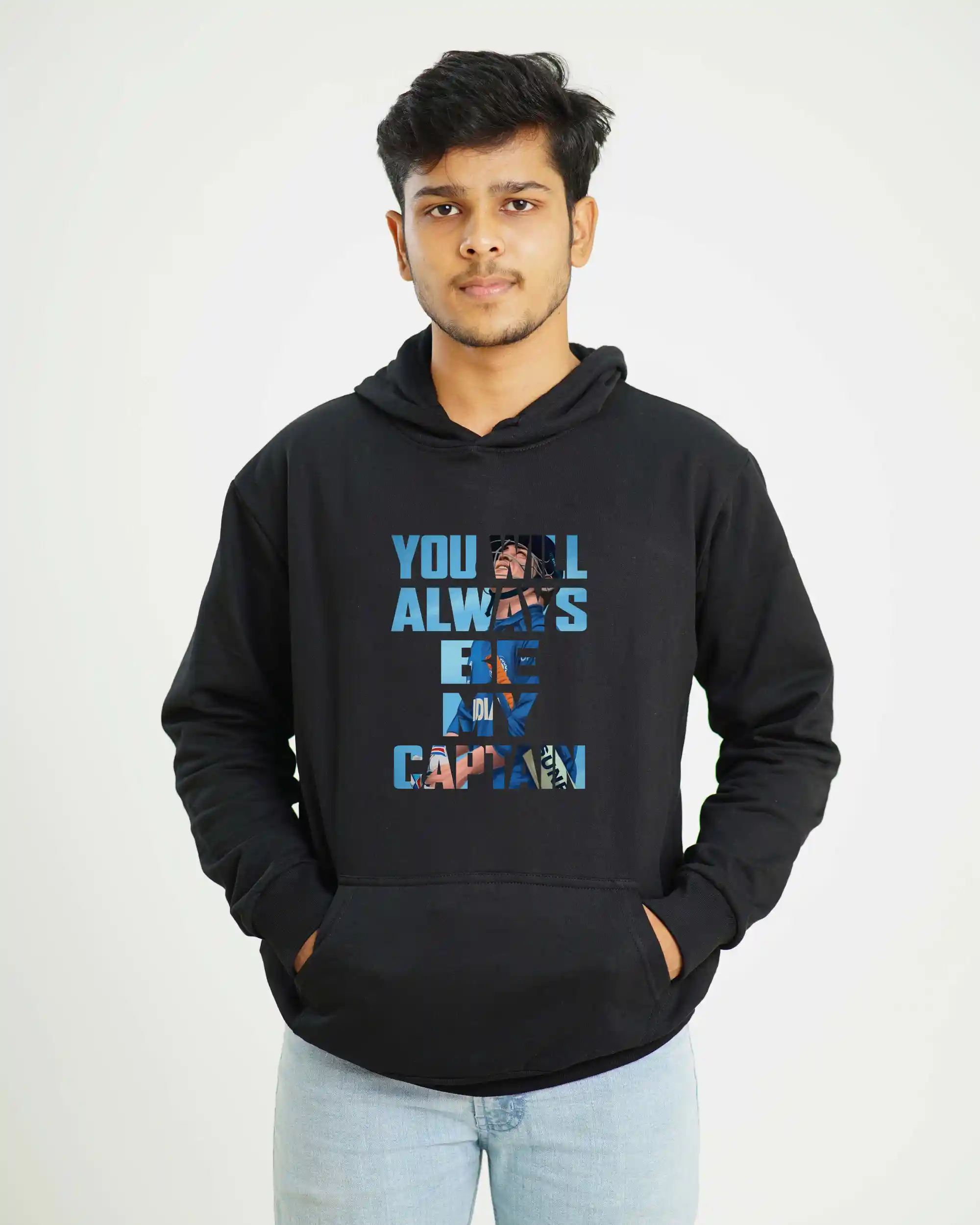 Step up to the crease in style with our ‘You will always be my Captain’Hoodie, paying tribute to the legendary Mahendra Singh Dhoni. With its comfortable fit and iconic design, this shirt is a must-have for every cricket enthusiast. Let the world know who your true captain is, both on and off the field, as you sport this timeless piece of cricketing glory.